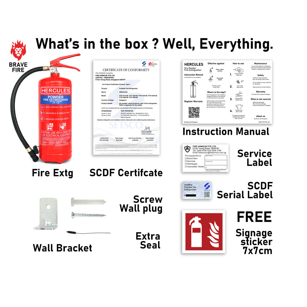 The 4 KG Dry powder fire extinguisher is the lightest amongst all powder types with a fire hose. Easy to handle yet still powerful enough to take on medium sized fires.